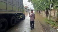 Genangan Air Setinggi 40 Cm Tutupi Jl. Raya Anyer Ciwandan, Personel Polsek Ciwandan Sigap Atur Lalu Lintas