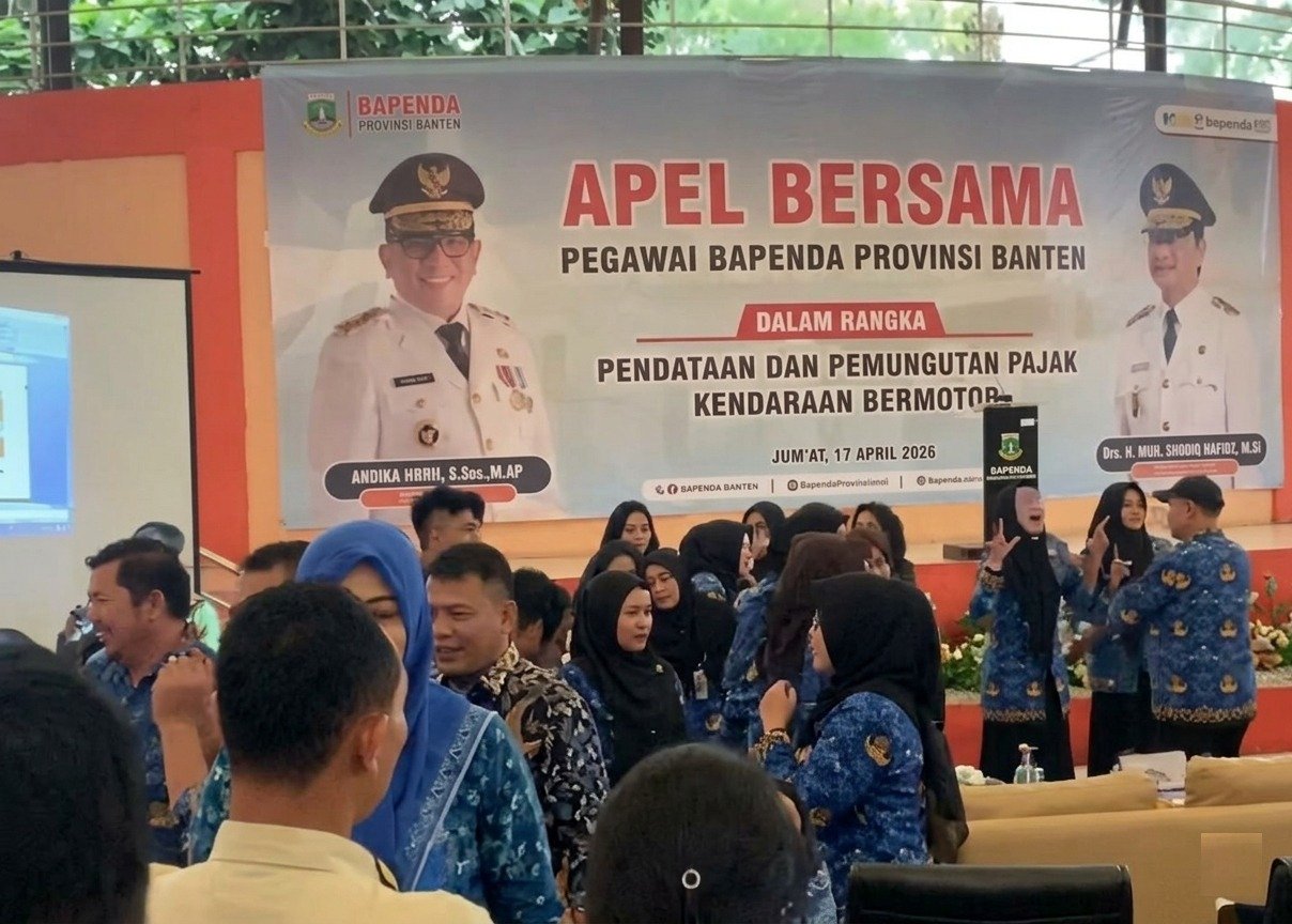Serang,- Matamedianews.co.id,- Badan Pendapatan Daerah (Bapenda) Provinsi Banten menggelar apel bersama dalam rangka penataan dan optimalisasi pemungutan pajak kendaraan bermotor pada Jumat, 17 April 2026, bertempat di Plaza Aspirasi, Kawasan Pusat Pemerintahan Provinsi Banten (KP3B), Kota Serang.