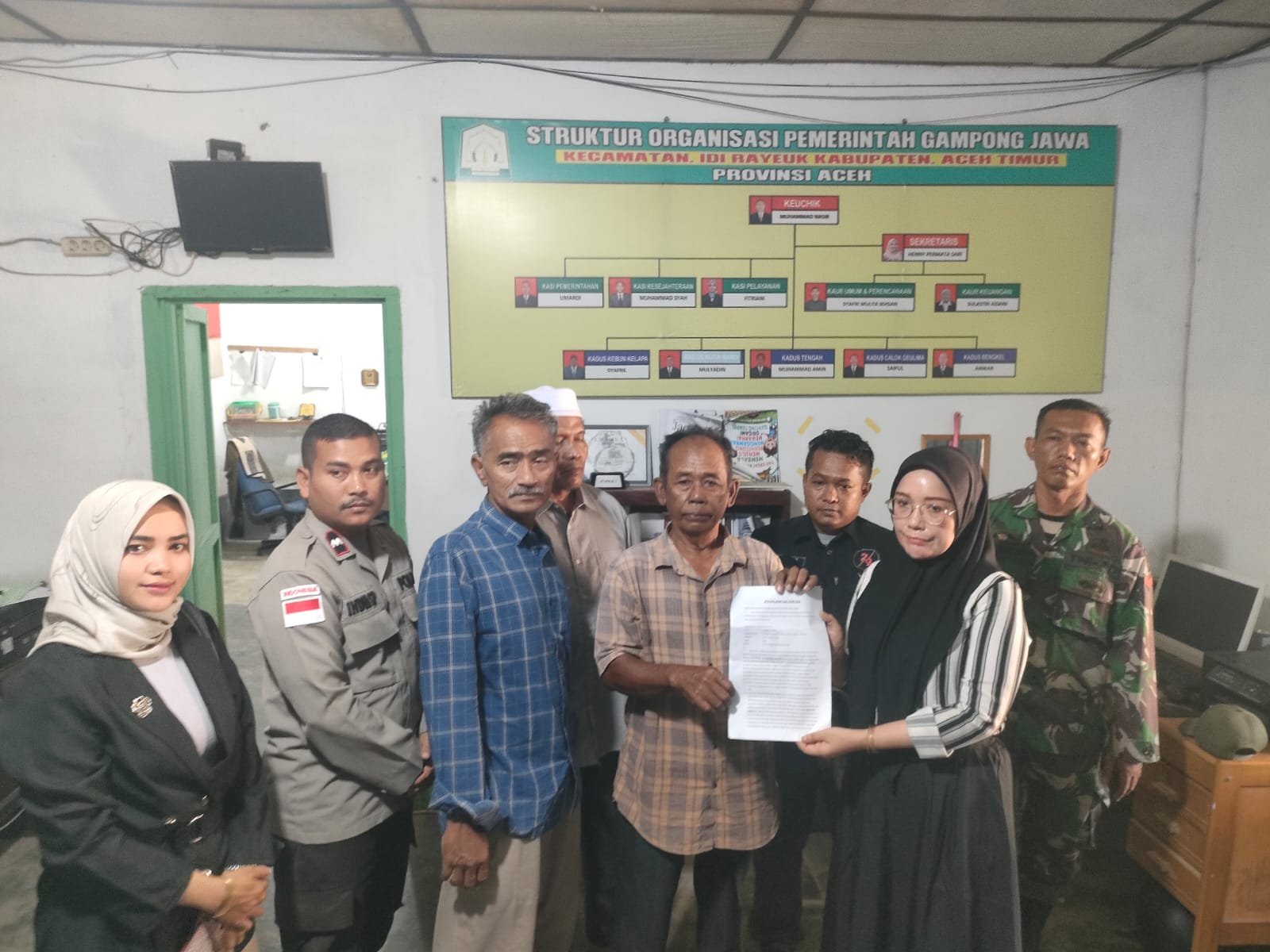 Aceh Timur — Pimpinan Kantor Hukum Ema Fiana bersama rekan berperan aktif memfasilitasi proses perdamaian dan penyelesaian secara kekeluargaan antara warga dan Pemerintah Gampong Jawa, Kecamatan Idi, Kabupaten Aceh Timur, menyusul polemik yang sempat mencuat akibat unggahan media sosial.