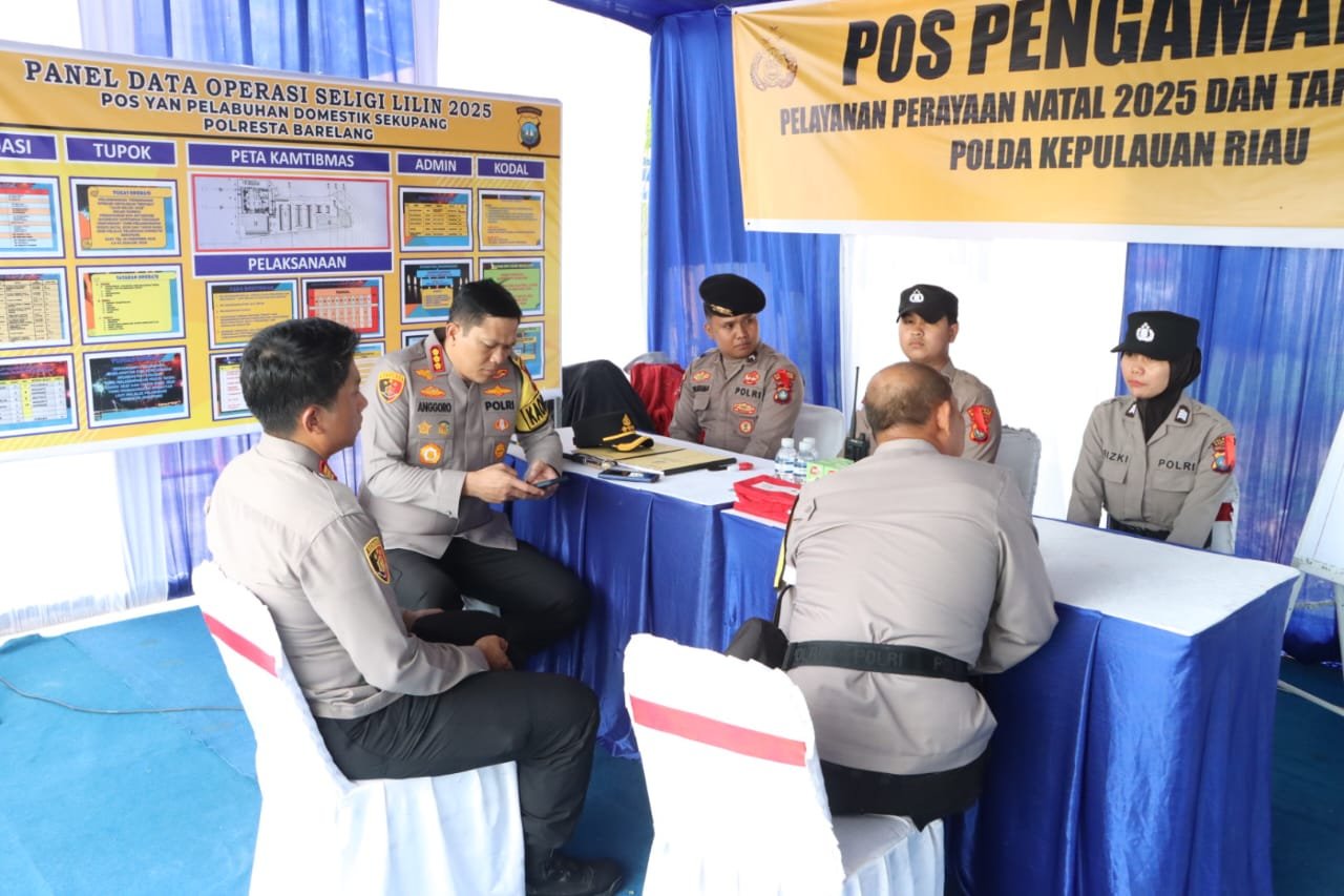 Dalam rangka memastikan pelaksanaan pengamanan dan pelayanan Natal 2025 dan Tahun Baru 2026 (Nataru) berjalan dengan aman, tertib, dan lancar, Kapolresta Barelang Kombes Pol Anggoro Wicaksono, S.H., S.I.K., M.H., memimpin langsung kegiatan pengecekan dan pengawasan terhadap personel pengamanan di Pos Pengamanan (Pos Pam) dan Pos Pelayanan (Pos Yan) yang berada di wilayah hukum Polresta Barelang, pada Minggu (28/12/2025).