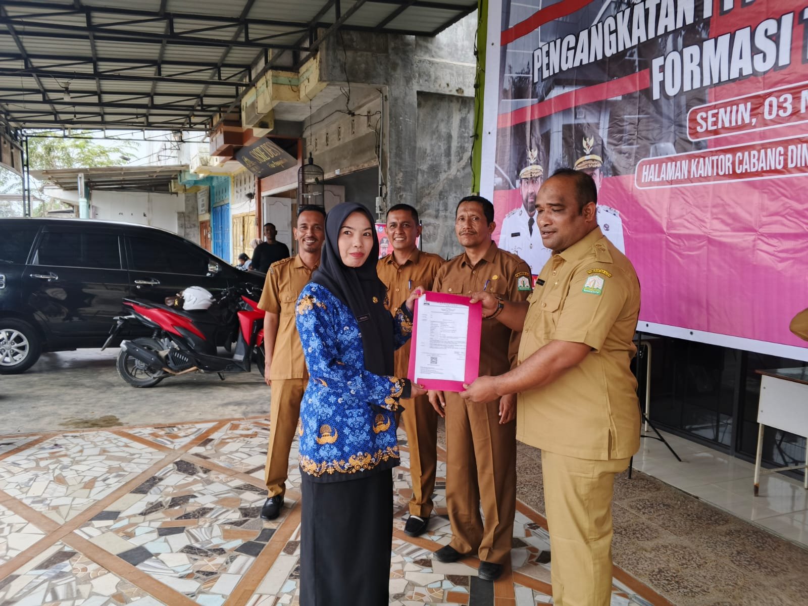 Kacabdin Pendidikan Aceh Timur Serahkan SK Gubernur Tentang Pengangkatan PPPK Tahap I Formasi 2024.