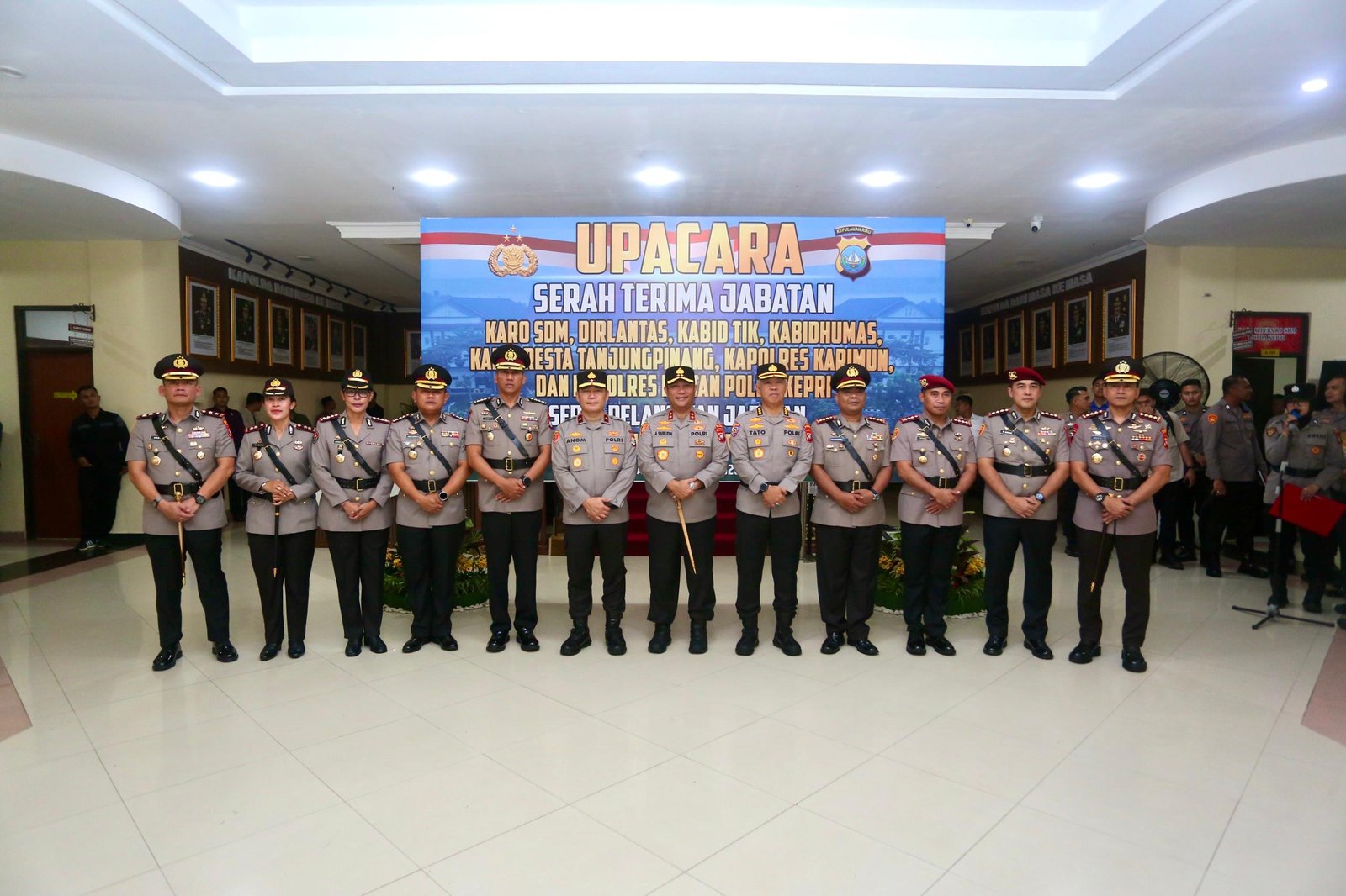 Kapolda Kepulauan Riau Irjen. Pol. Asep Safrudin, S.I.K., M.H., memimpin upacara Serah Terima Jabatan (Sertijab) sejumlah pejabat utama di lingkungan Polda Kepri, meliputi Karo SDM, Dirlantas, Kabid TIK, Kabidhumas, Kapolresta Tanjungpinang, Kapolres Karimun, dan Kapolres Bintan. Selain itu, turut dilaksanakan pelantikan jabatan Dirreskrimum dan Dirresnarkoba Polda Kepri. Kegiatan tersebut berlangsung di Lobby Utama Polda Kepri, Rabu (7/1/2026).
