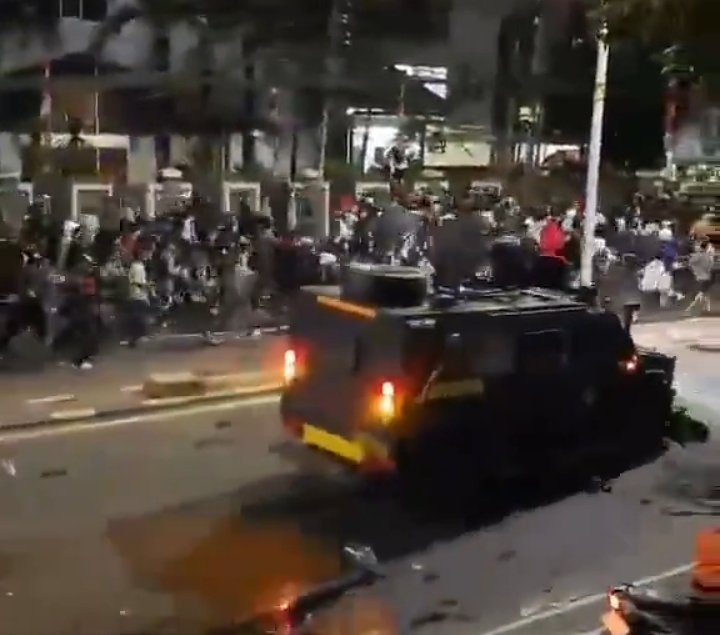Video insiden yang kini viral di media sosial menunjukkan momen ketika kendaraan rantis Brimob berwarna hitam melaju kencang sambil menyalakan sirine ke arah kerumunan massa aksi. Massa yang berada di depan gerbang Markas Brimob, Kwitang, Jakarta Pusat, tampak berhamburan menghindar.