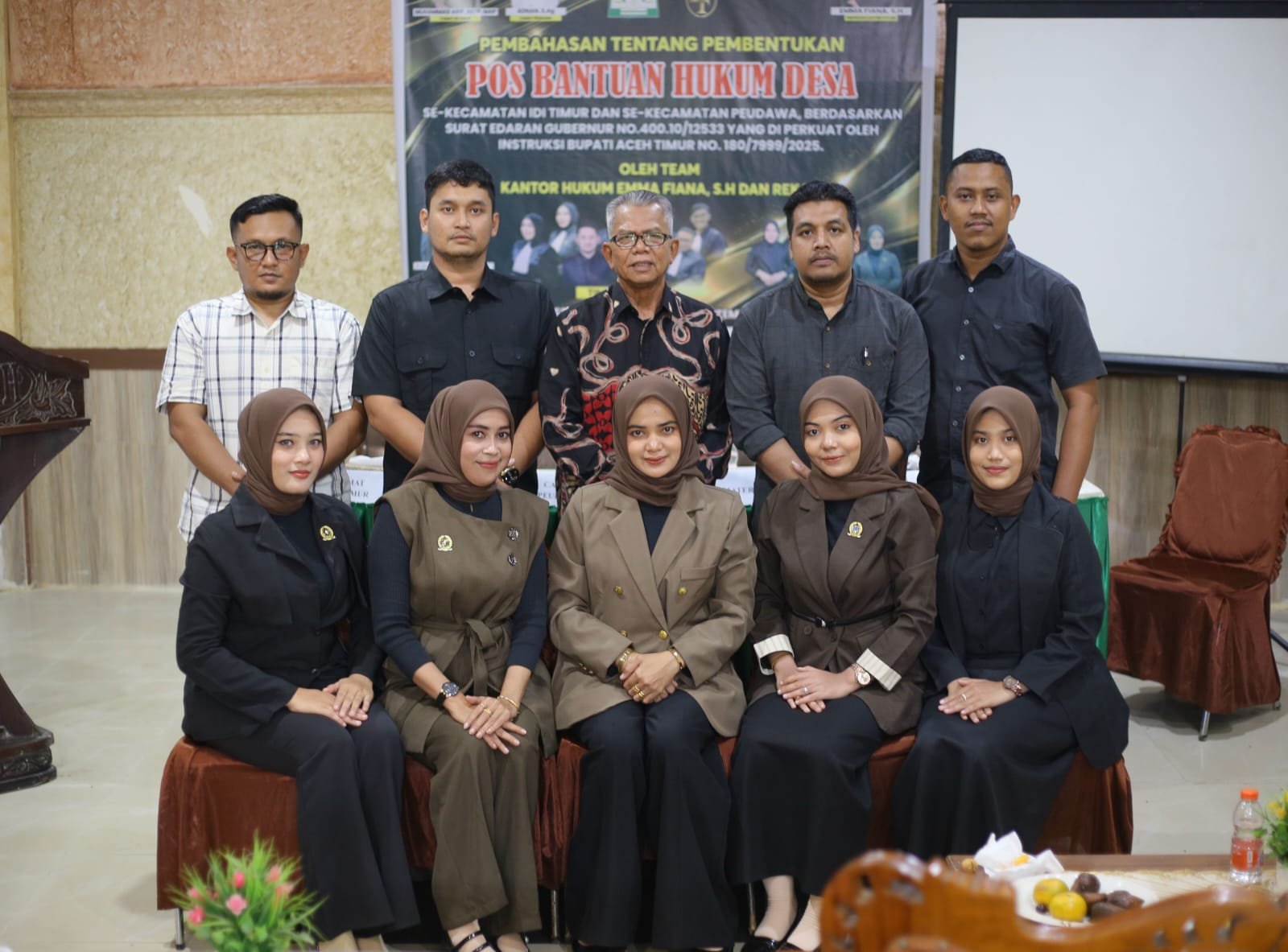 Aceh Timur-Pimpinan Kantor Hukum Emma Fiana dan rekan menggelar sosialisasi pembentukan Pos Bantuan Hukum (Posbankum) kepada kepala desa khusus kecamatan peudawa dan Idi Timur berdasarkan surat edaran gubernur no 400.10/12533 yang di perkuat oleh instruksi Bupati Aceh Timur no 180/7999/2025.