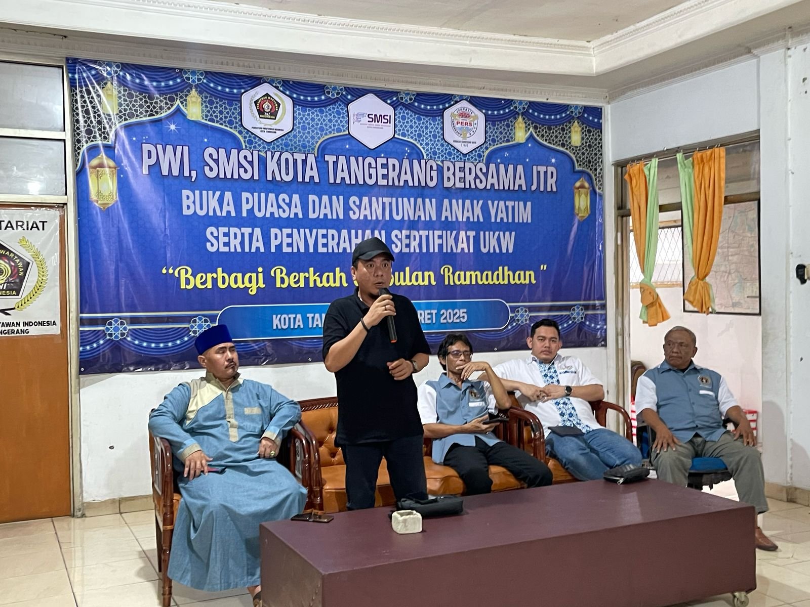 TANGERANG, – matamedianews.co.id – Di bulan suci ramadhan yang memasuki hari ke 26, Ketua PWI Banten Rian Nopandra menyerahkan sertifikat UKW anggota PWI Kota Tangerang dalam kegiatan buka bersama yang digelar oleh PWI, SMSI, dan JTR Kota Tangerang di Sekber, Kota Tangerang, Rabu (26/3/2025).
