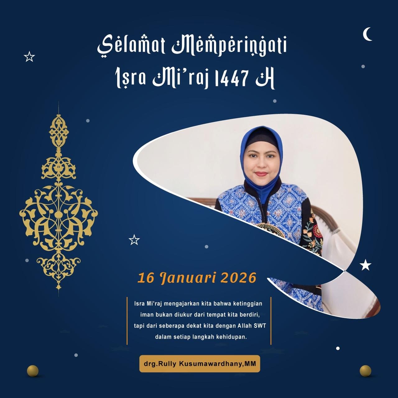 Momentum sakral ini menjadi refleksi mendalam bagi *drg. Rully Kusumawardhany, MM*, sosok wanita muslimah sekaligus ibu, yang memandang Isra Mi’raj sebagai pengingat peran strategis perempuan dalam menjaga iman, keluarga, dan peradaban umat.