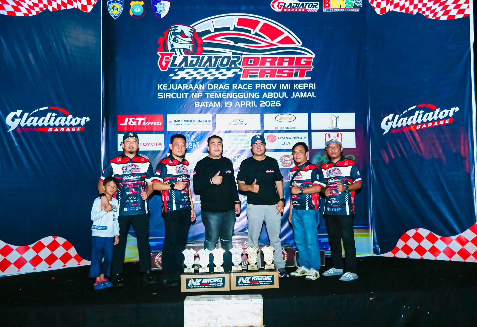 BATAM – Ajang balap resmi Gladiator Drag Fast Drag Race Championship 2026 yang digelar pada Minggu, 19 April 2026, di Sirkuit N.P Tumenggung Abdul Jamal, Batam, resmi ditutup dengan meriah. Acara yang diikuti oleh ratusan pembalap dari berbagai daerah ini berjalan lancar, aman, dan penuh persaingan ketat.