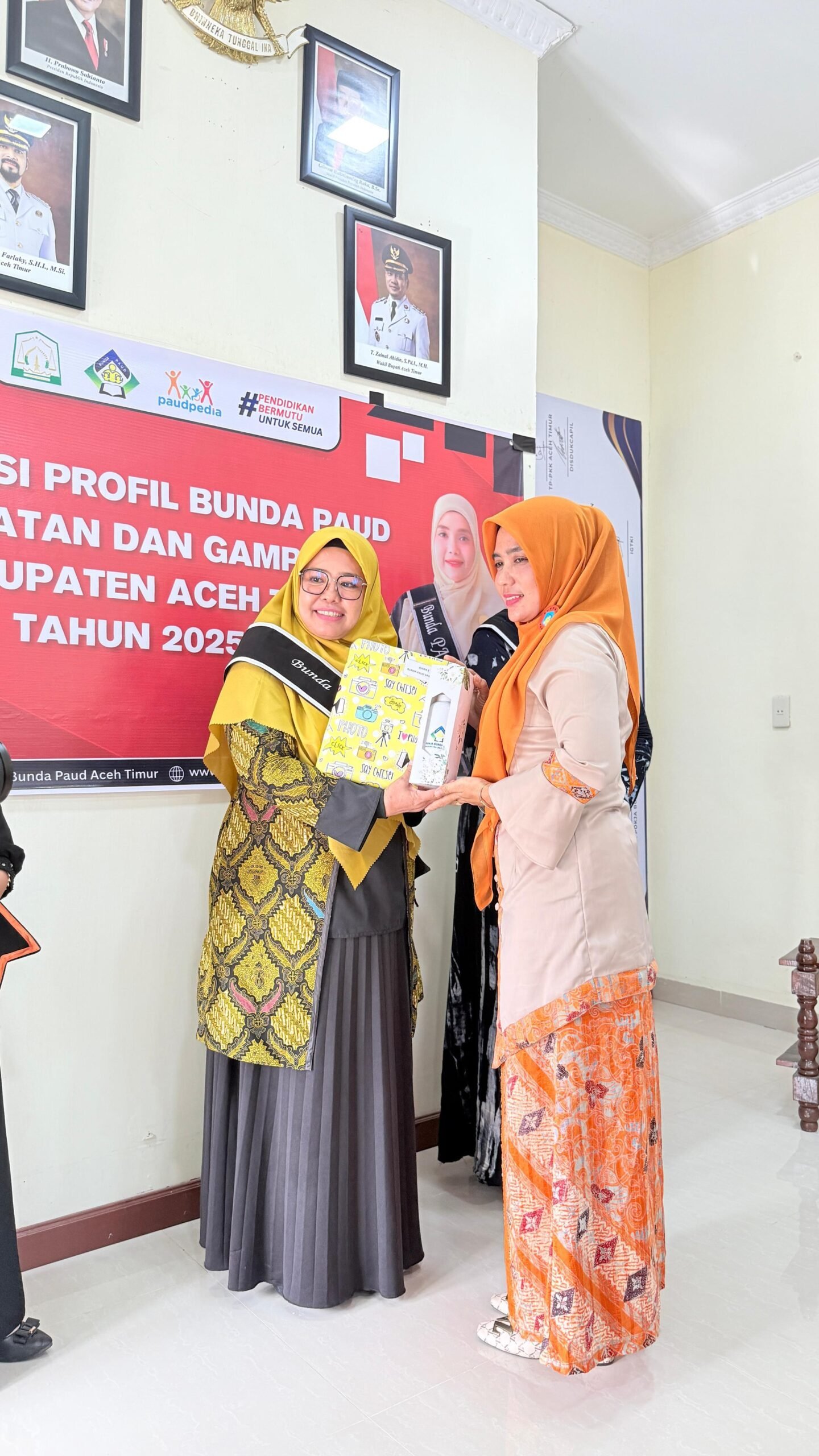 Aceh Timur– Istri Wakil Bupati Aceh Timur yang juga selaku Pembina Teknis Pokja Bunda PAUD, Ny.Erni Handayani T. Zainal Abidin, S.Keb, menghadiri Kegiatan Apresiasi Profil Bunda Kecamatan dan Gampong se-Kabupaten Aceh Timur Tahun 2025 yang berlangsung di Aula Kantor Bupati Aceh Timur. Jumat 10 Okt 2025.