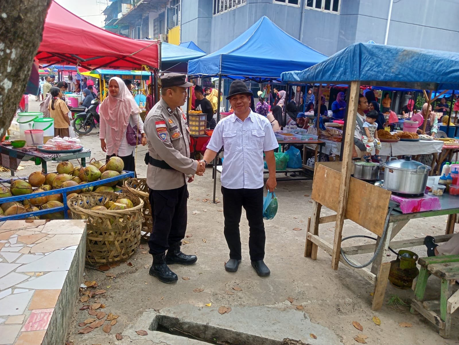 Pastikan Aktivitas Masyarakat Aman, Bhabinkamtibmas Sungai Harapan Monitoring Pasar Kaget Ramadhan