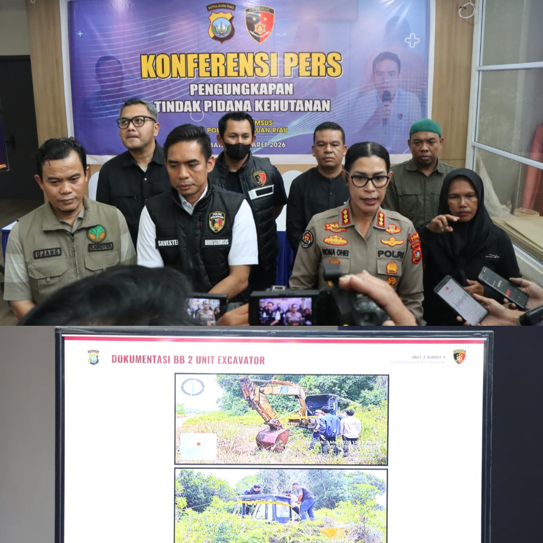 Dalam kesempatan tersebut, Kabidhumas Polda Kepri Kombes Pol. Dr. Nona Pricillia Ohei, S.I.K., S.H., M.H., menyampaikan bahwa pengungkapan ini merupakan komitmen nyata Polda Kepri dalam melindungi aset negara dan ekosistem hutan konservasi dari upaya penguasaan ilegal.