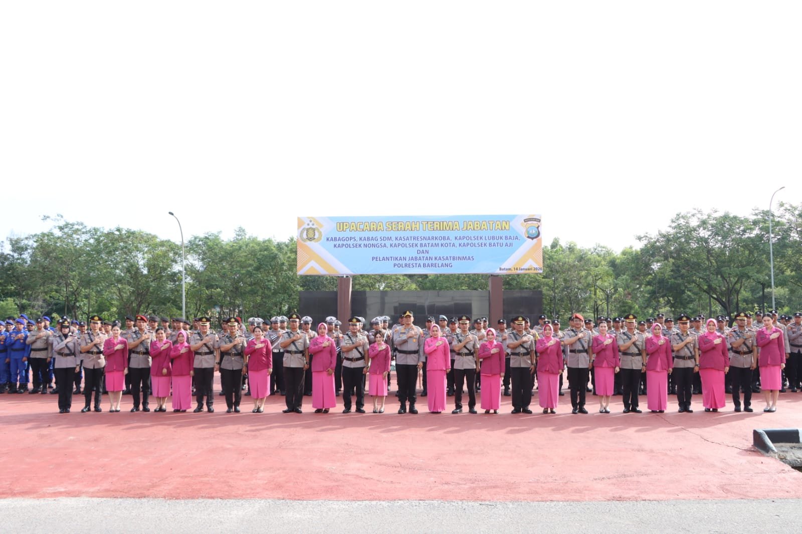 Polresta Barelang melaksanakan Upacara Serah Terima Jabatan (Sertijab) sejumlah pejabat utama serta pelantikan Kasatbinmas Polresta Barelang yang dirangkaikan dengan acara kenal pamit. Kegiatan tersebut dipimpin langsung oleh Kapolresta Barelang Kombes Pol Anggoro Wicaksono, S.H., S.I.K., M.H. selaku Inspektur Upacara, dan berlangsung dengan khidmat di Lapangan Upacara Polresta Barelang serta Lobby Lantai I Mapolresta Barelang, Rabu, (14/01/2026).