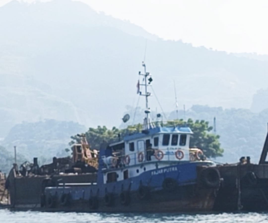 Diketahui, Limbah Besi Bangkai Kapal X Press Pearl dimuat dengan menggunakan tongkang MBS 8 dan dipandu oleh Tagbout TB Fajar Putra ke lahan milik PT Diaz Partama Utama.