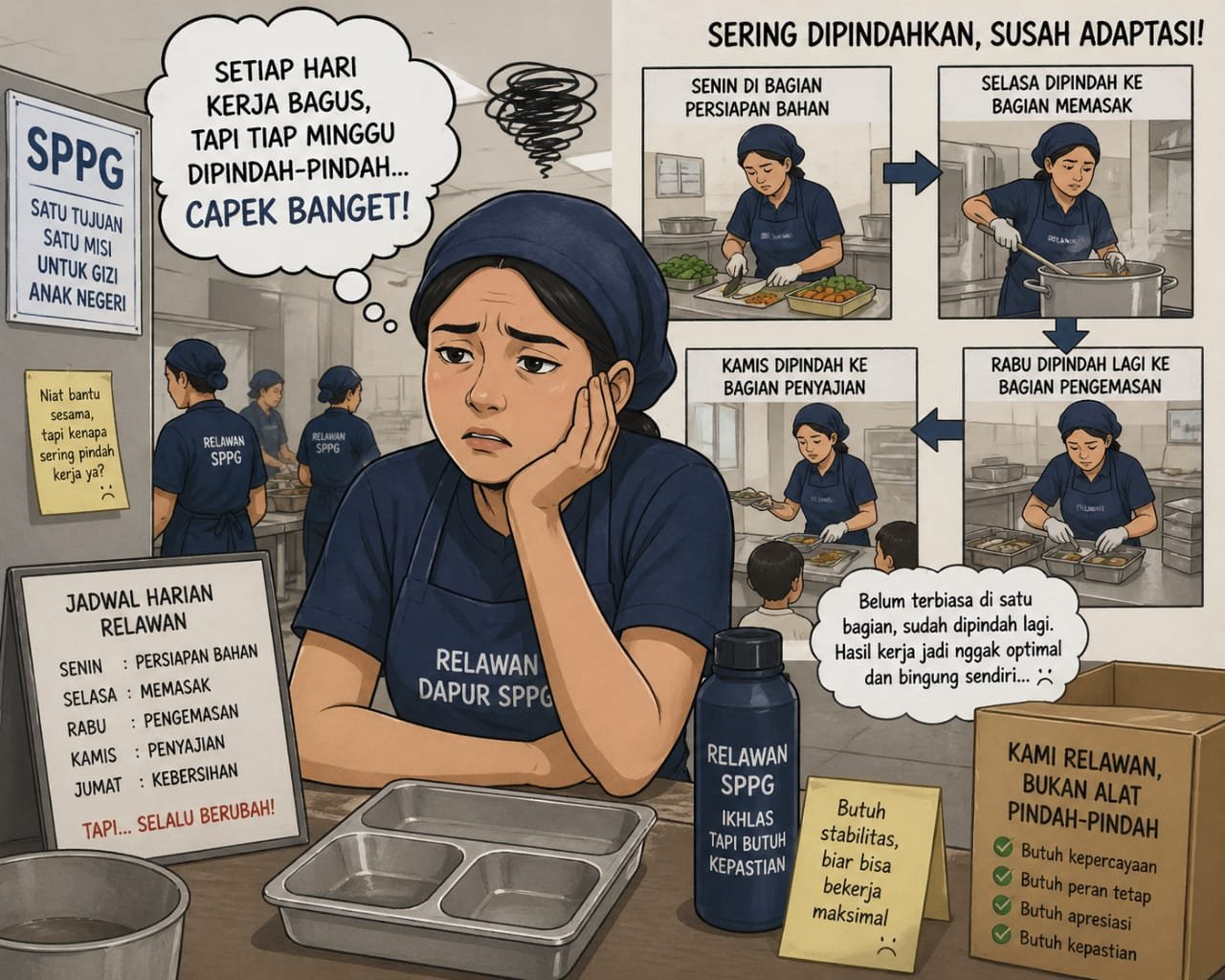 Menurut para relawan, perpindahan yang terlalu sering tidak hanya menyulitkan mereka dalam mengembangkan keterampilan di satu bidang, tetapi juga berpotensi mengganggu kelancaran operasional dapur. Mereka berharap adanya sistem penempatan yang lebih terstruktur dan mempertimbangkan pengalaman serta keahlian masing-masing relawan.