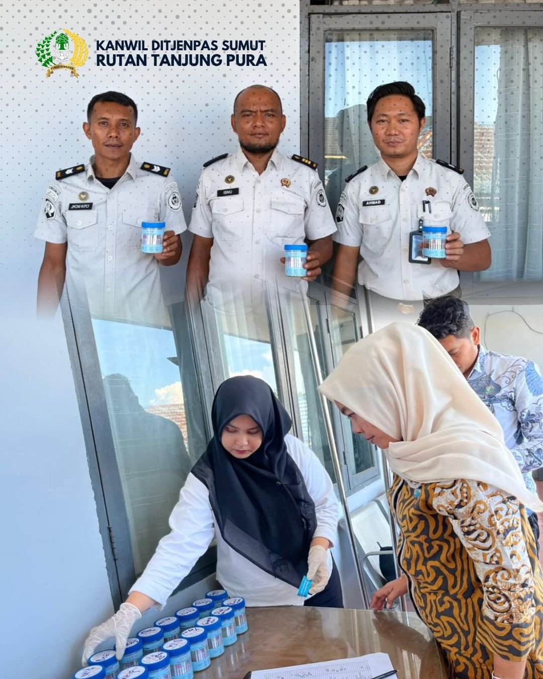 Tanjung Pura – Dalam rangka memperingati Hari Bakti Pemasyarakatan (HBP) ke-62, Rumah Tahanan Negara Kelas IIB Tanjung Pura menggelar kegiatan tes urine massal sebagai wujud nyata komitmen dalam menciptakan lingkungan yang bersih dari peredaran narkoba. Kegiatan ini melibatkan seluruh pegawai maupun Warga Binaan yang ada di lingkungan Rutan Tanjung Pura.Selasa (07/04)