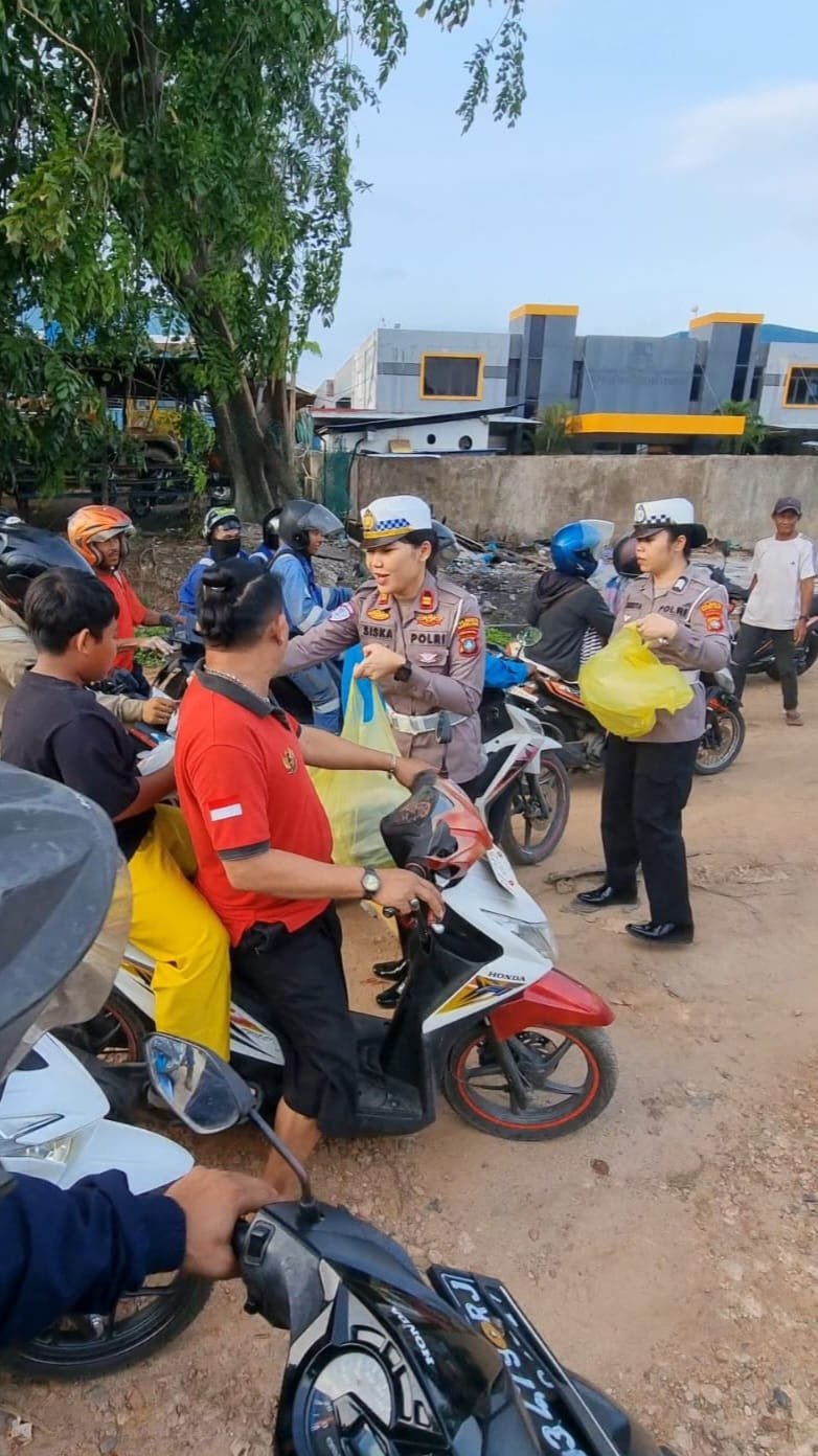 “Ini, Pak, untuk berbuka. Semoga berkah ya puasanya,” sebut seorang polwan dengan senyum ketika membagikan nasi kepada para pengendara di kawasan Batu Ampar, Selasa (24/2/2026) sore.