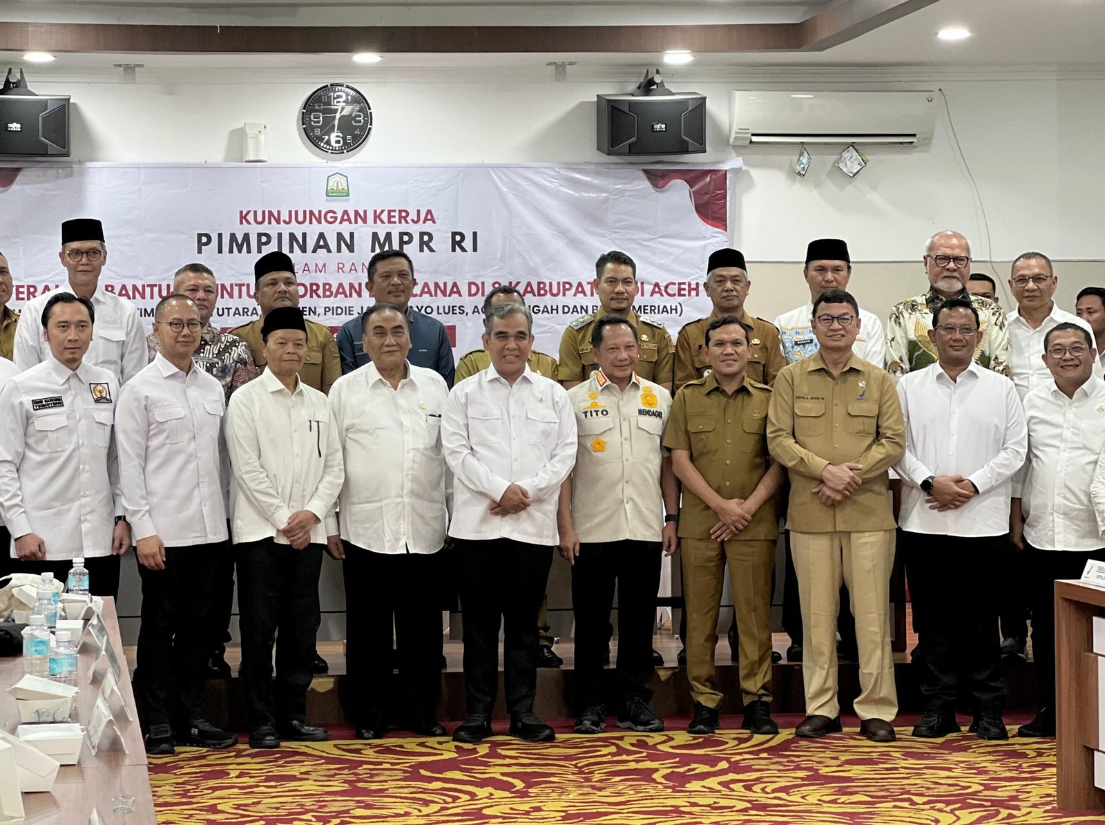 Dalam rapat bersama jajaran Pemerintah Aceh serta pemerintah kabupaten/kota, Pimpinan MPR RI dan Mendagri secara khusus membahas progres pembangunan daerah, serta penanganan darurat dan kemanusiaan, terutama menyangkut kondisi warga yang hingga kini masih bertahan di tenda-tenda pengungsian.