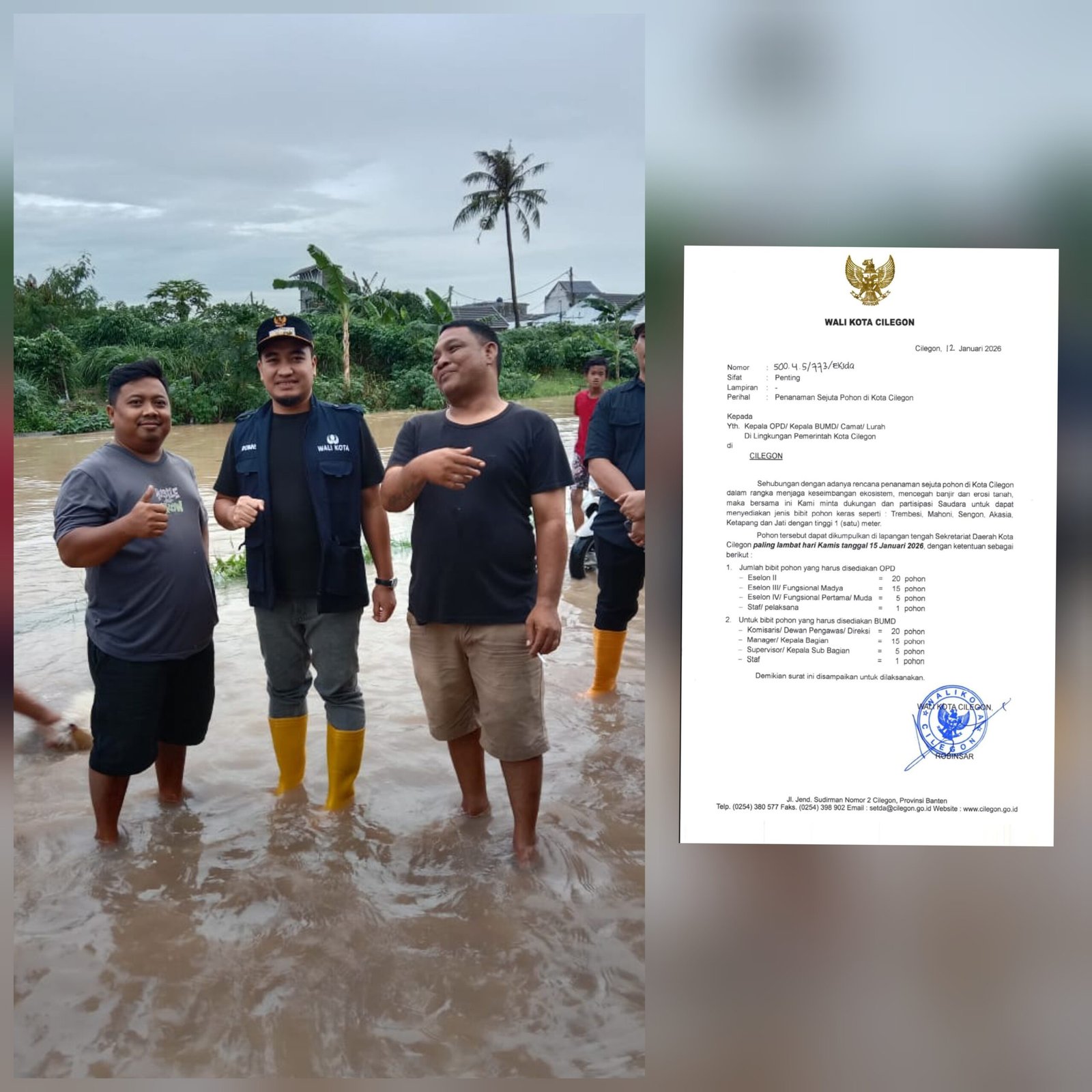 Instruksi tersebut tertuang dalam surat resmi Wali Kota Cilegon Nomor 500.4.5/773/Eksda tertanggal 12 Januari 2026 yang bersifat penting. Seluruh jajaran diminta berpartisipasi aktif dengan menyediakan bibit pohon keras.