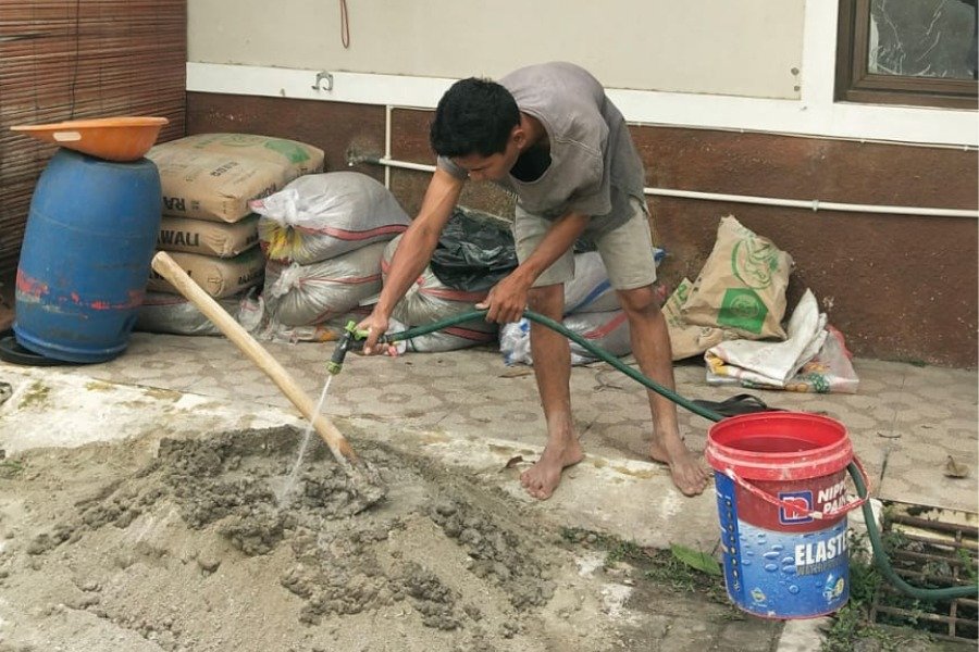 “Iya pak, kami sudah mengajukan usulan perbaikan namun tak kunjung terealisasi. Akhirnya kami melakukan perbaikan mandiri dengan sumberdana swadaya. Alhamdulillah warga sangat antusias,” ungkap salah seorang warga.